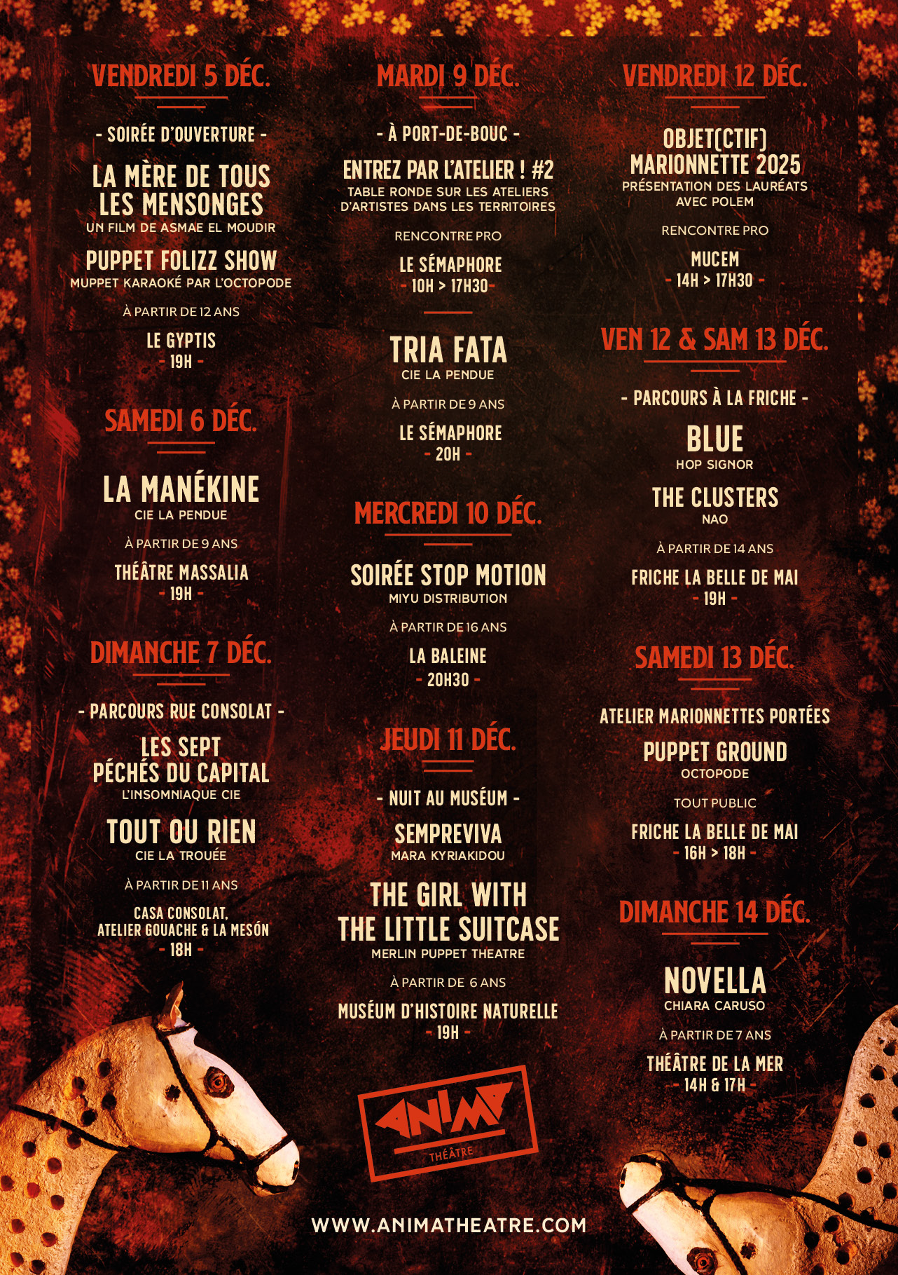 - En 2023, nous avons célébré nos 10 ans de festival et les 20 ans d’existence d’Anima Théâtre à travers des parcours de petites formes marionnettiques, des projections de films, des spectacles extraordinaires, des tables rondes et une soirée festive avec un incontournable karaoké marionnettique !